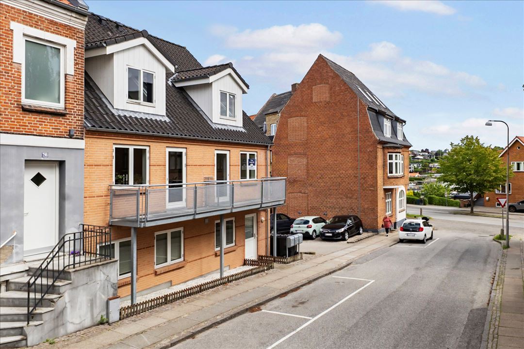 I hjertet af Skanderborg, på Østergade 31, 1. TV., finder du denne charmerende ejerlejlighed på flere veludnyttede kvadratmeter fordelt over to plan. Med sin centrale placering tæt på både indkøb, offentlig transport og naturskønne omgivelser er denne bolig perfekt for dig, der ønsker at kombinere bylivets bekvemmeligheder med muligheden for at nyde Skanderborg Sø.Lejligheden byder i stueplan på et lyst og indbydende køkken-alrum i åben forbindelse med stuen. Herfra er der udgang til en hyggelig altan med kig til vandet, hvor du kan nyde de smukke omgivelser og sommerens lange aftener. Et praktisk viktualierum giver ekstra opbevaringsplads og rummer også både vaskemaskine og tørretumbler.