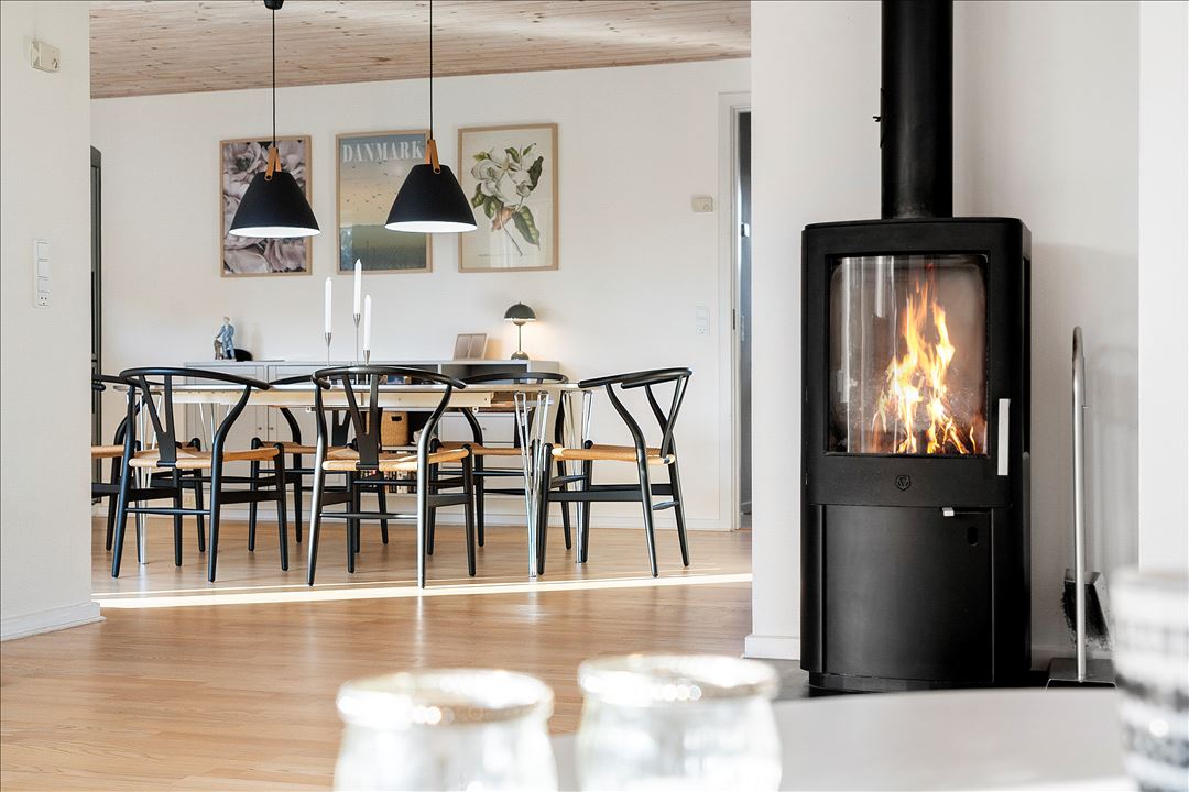 Den rummelige stue indbyder til både afslapning og hyggelige sammenkomster. De store vinduespartier sikrer et dejligt naturligt lysindfald, der gennemstrømmer hele boligen. Fra stuen er der direkte adgang til en charmerende terrasse og en stor, nemt anlagt have – et ideelt frirum for både børn og voksne.