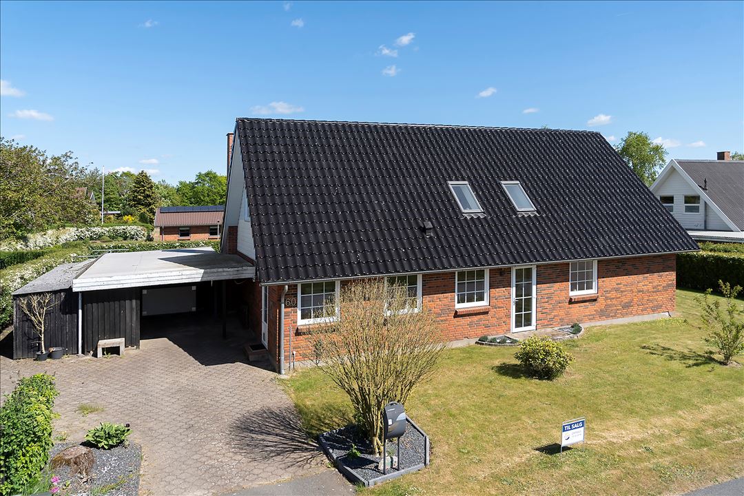 Velkommen til Bakkevænget 60 – en skøn og velindrettet villa beliggende i en lukket lomme i den sydlige del af Toftlund. Her får du en rolig beliggenhed tæt på naturen og samtidig nem adgang til byens faciliteter.Boligen byder på hele 176 m² fordelt på 1,5 plan med en gennemtænkt planløsning, der giver masser af plads til familien. Stueplan rummer en praktisk entré/bryggers med direkte adgang til et stort og lyst køkken/alrum – et naturligt samlingspunkt i hjemmet. Herfra er der åben forbindelse til den hyggelige stue, hvor brændeovnen skaber en varm atmosfære, og hvorfra der er udgang til en nord/østvendt terrasse.